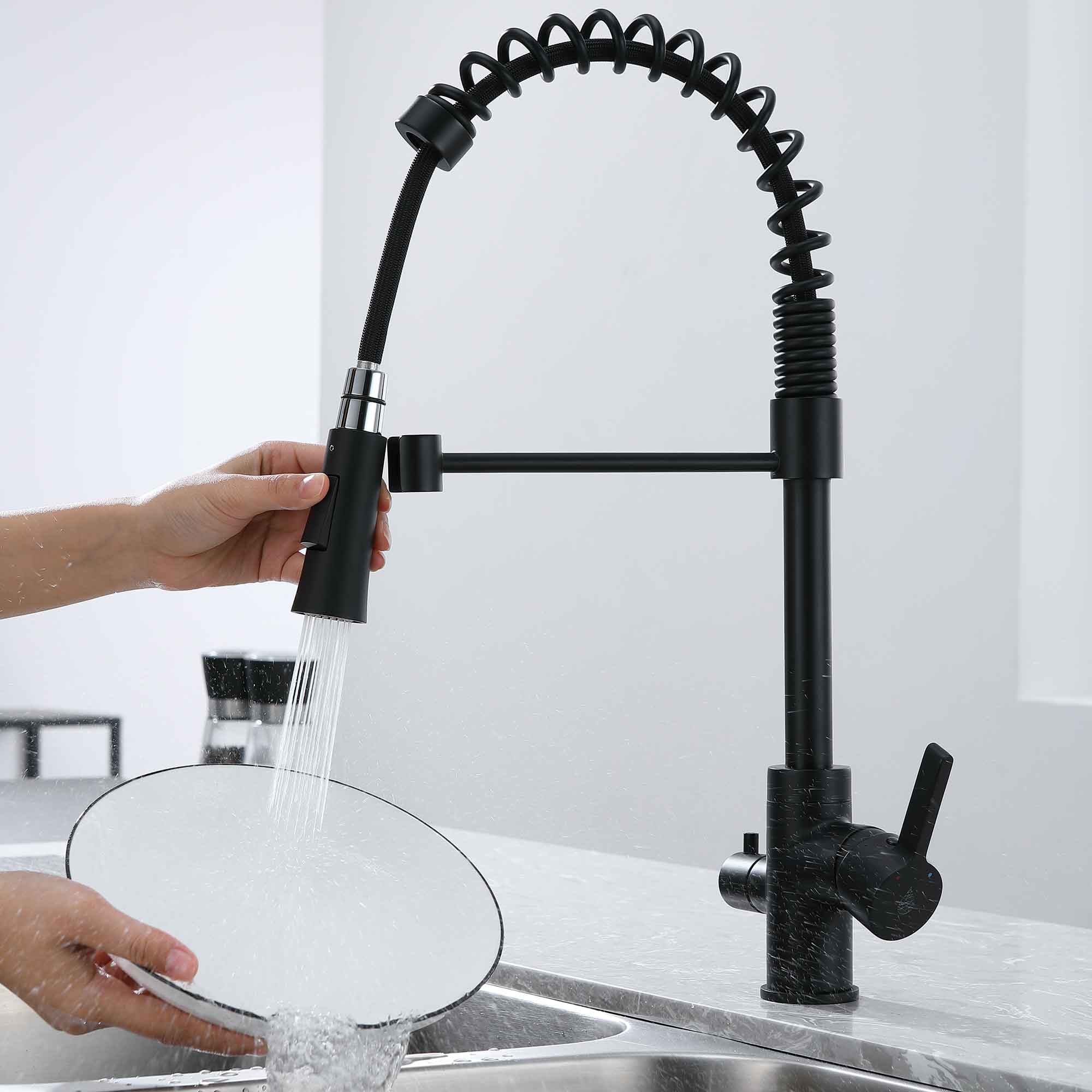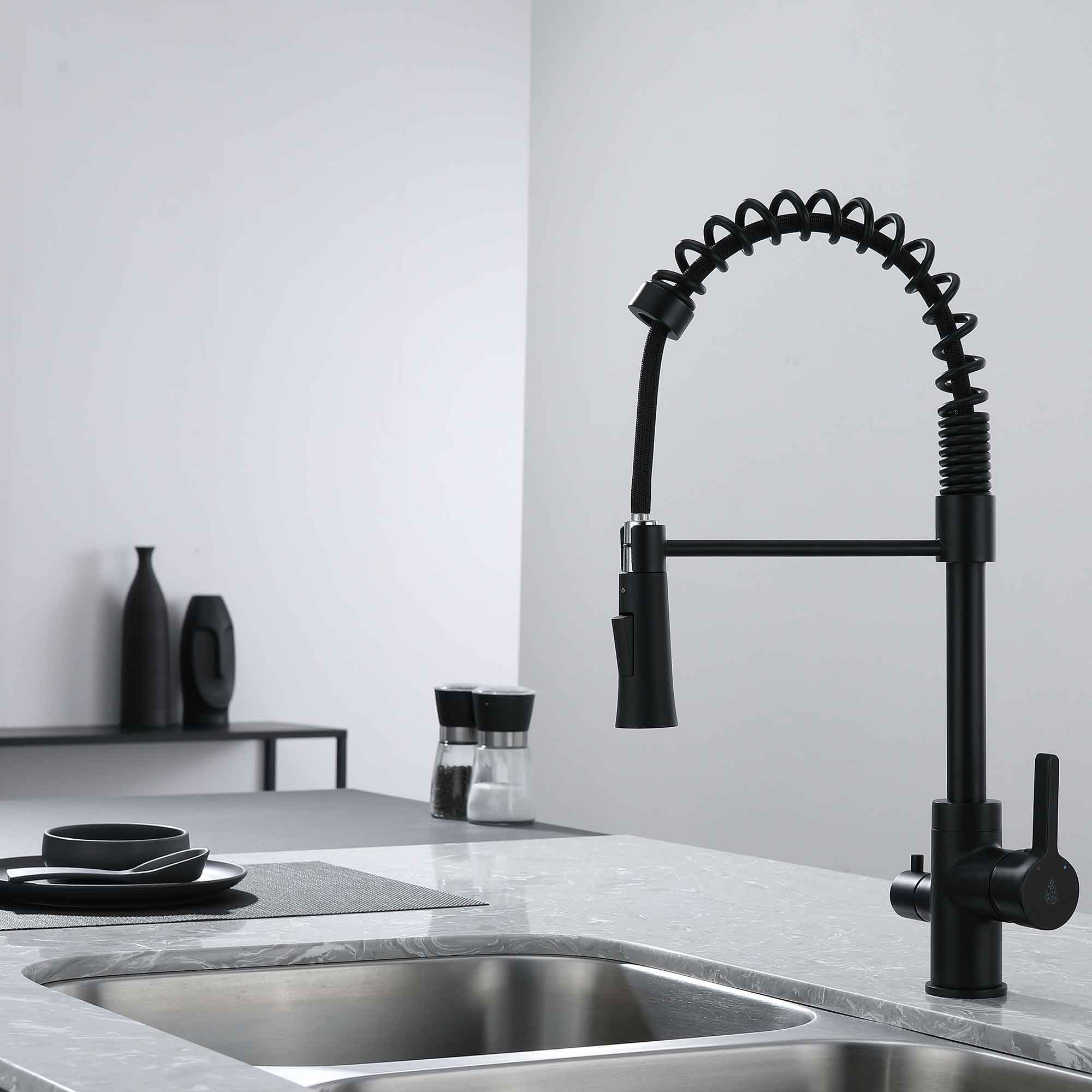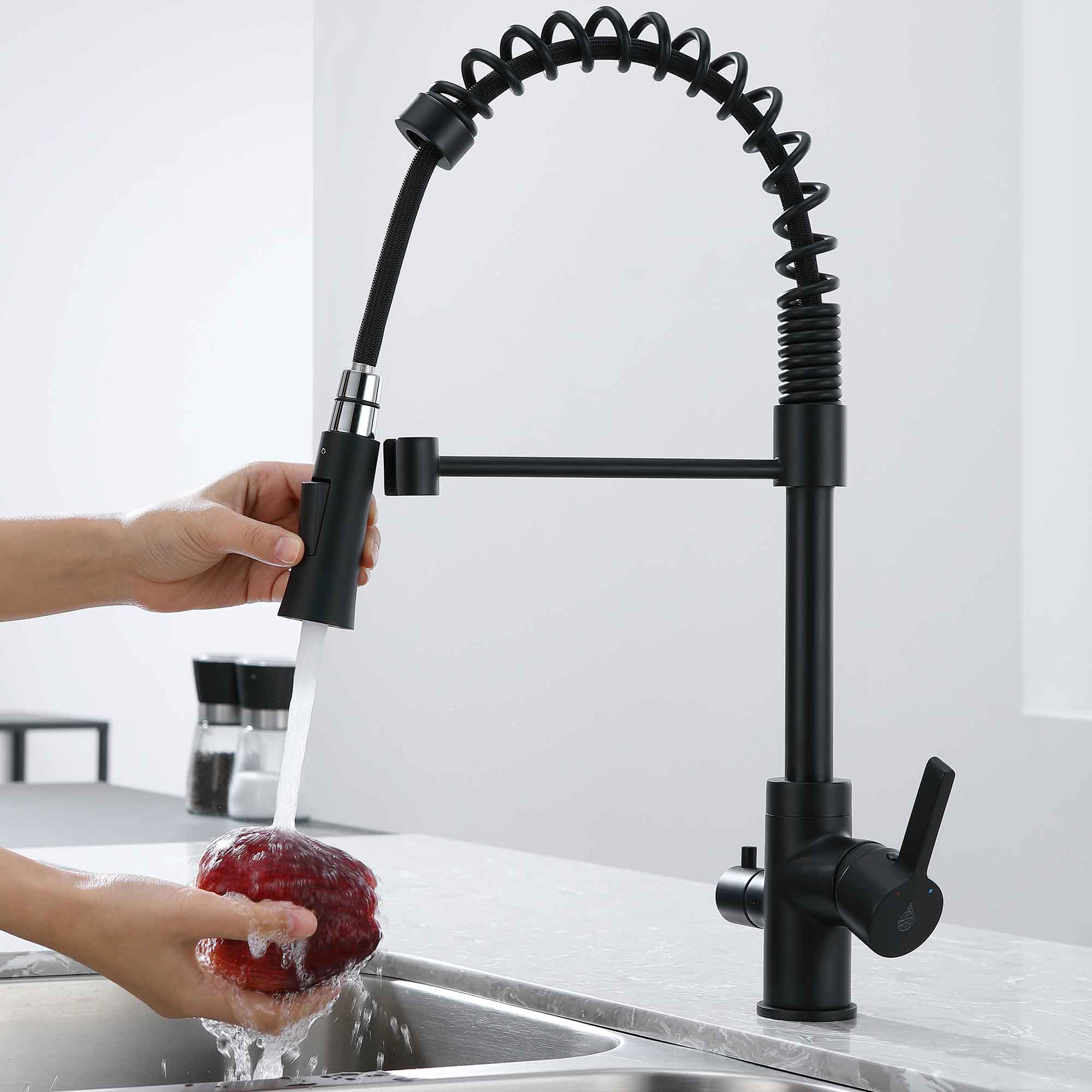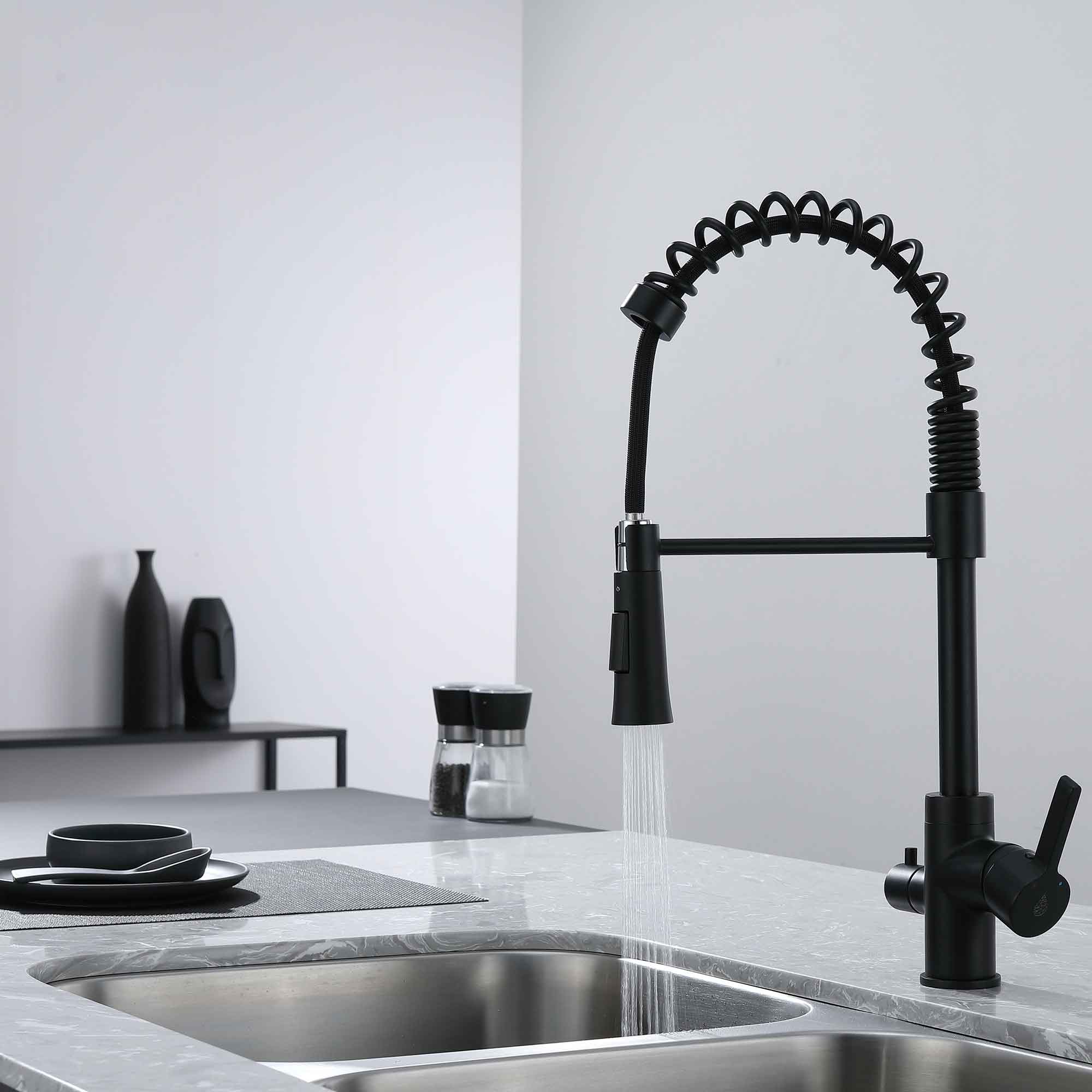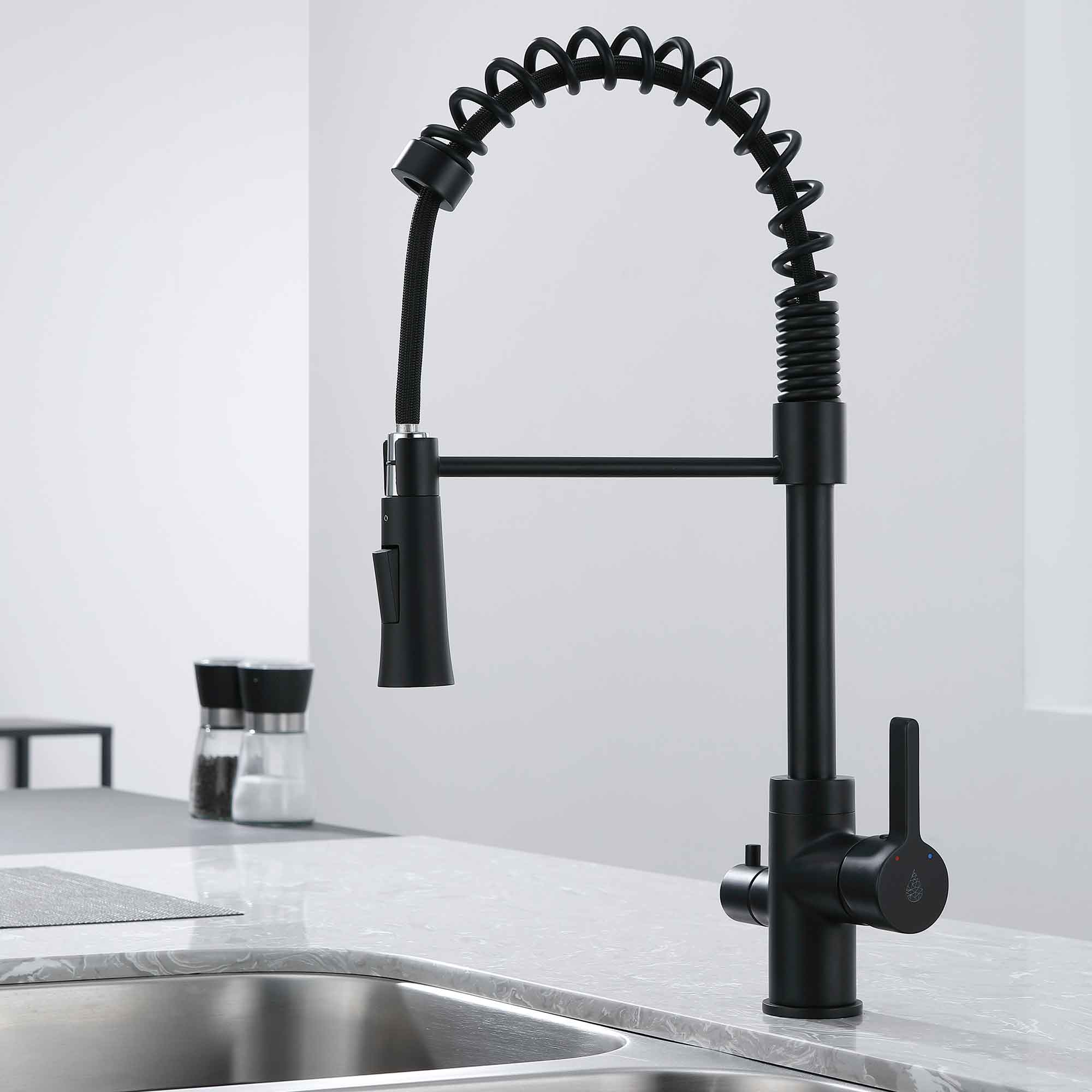 Musta, teollishenkinen keittiöhana Bathlife Hav sisältää astianpesukoneventtiilin ja ulosvedettävän juoksuputken. Juoksuputki helpottaa niin altaan kuin astioidenkin puhtaanapitoa. Tyylikäs hana päivittää keittiön tälle vuosikymmenelle kertaheitolla. Hana on helppo puhdistaa kostealla liinalla ja pienellä määrällä saippuaa.