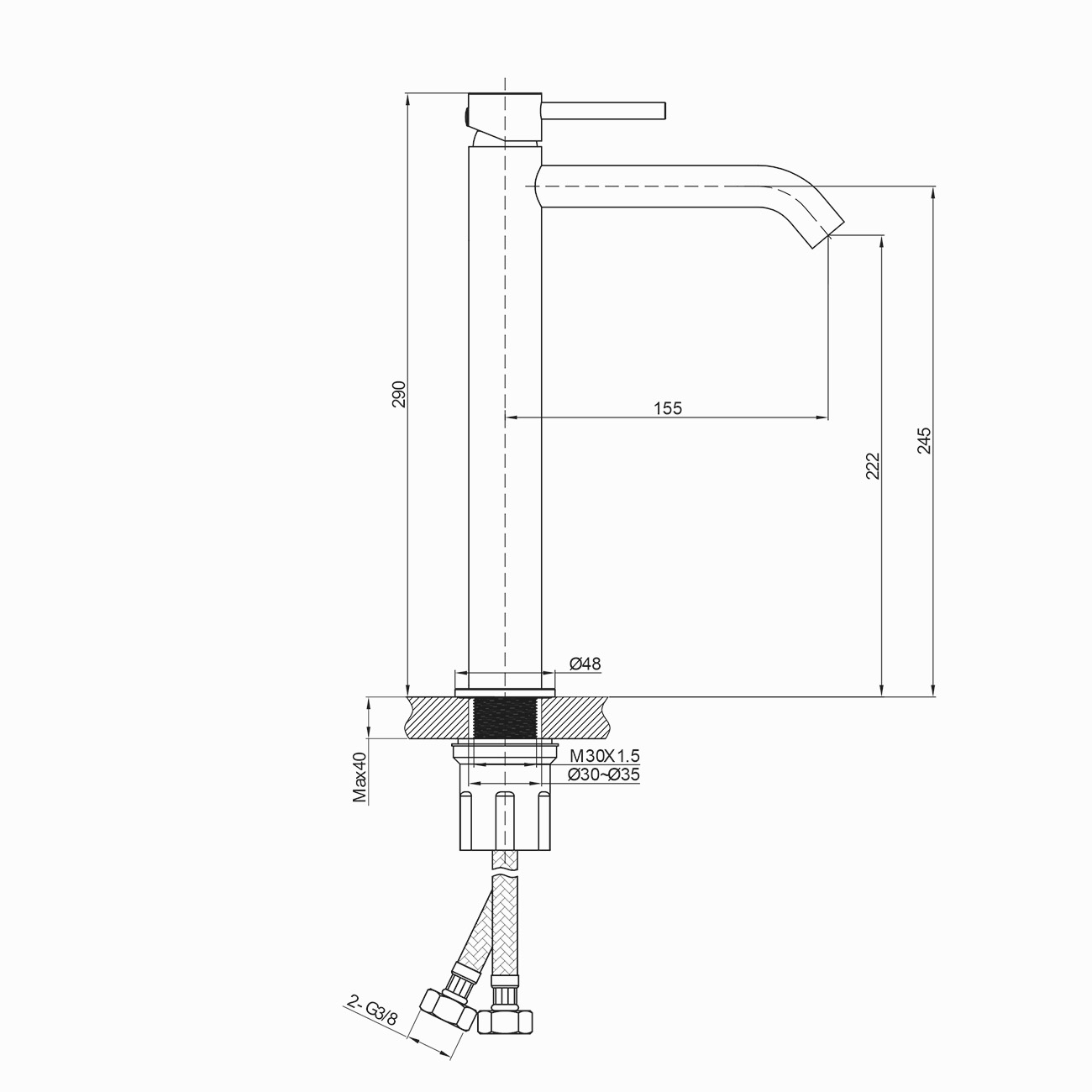 - Reiän halkaisija pesualtaaseen tai työtasoon kiinnittämistä varten 30-35 mm