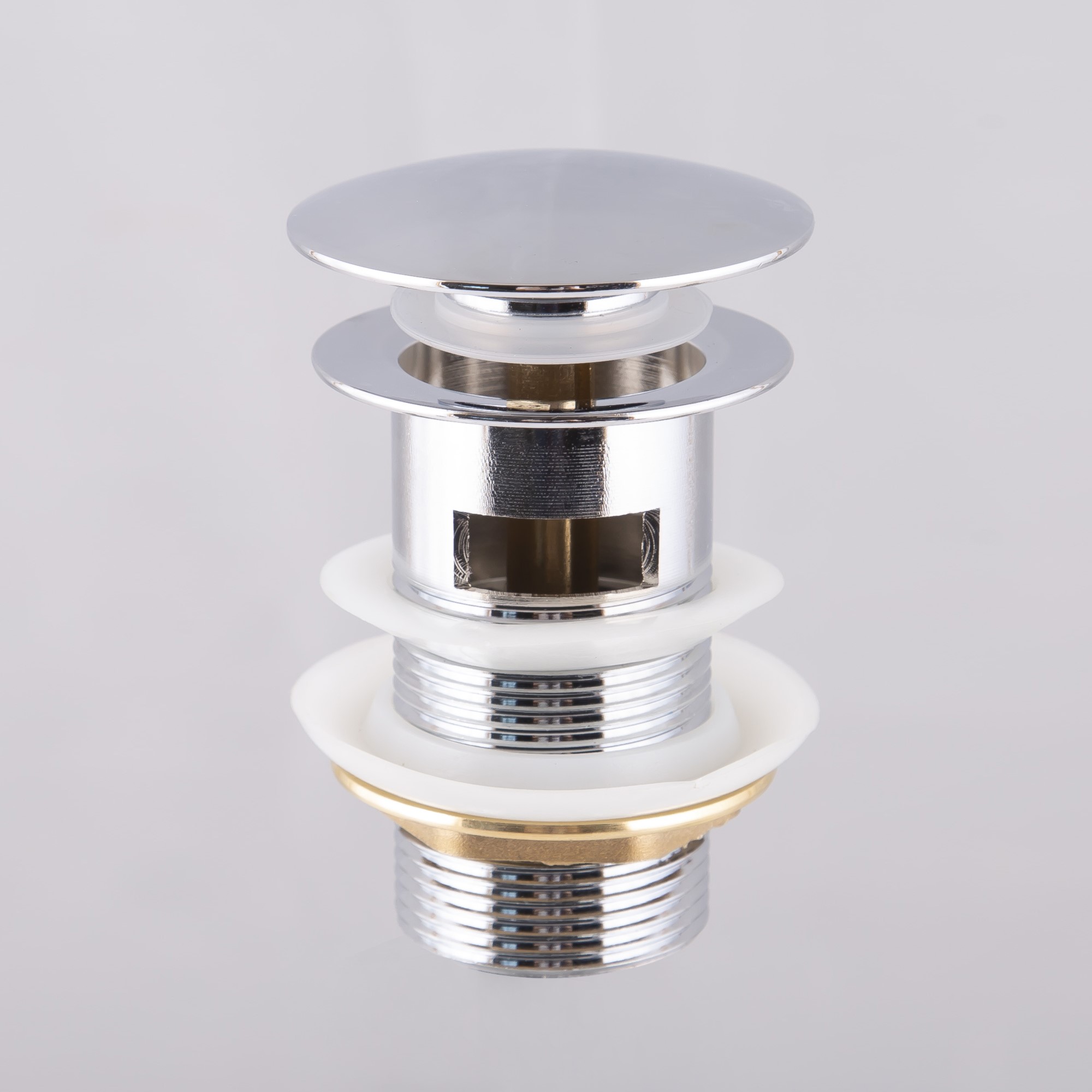 Pohjaventtiili Bathlife ylivuotosuojalla on varustettu jousitetulla hatulla. Pohjaventtiili avataan ja suljetaan hatusta painamalla.