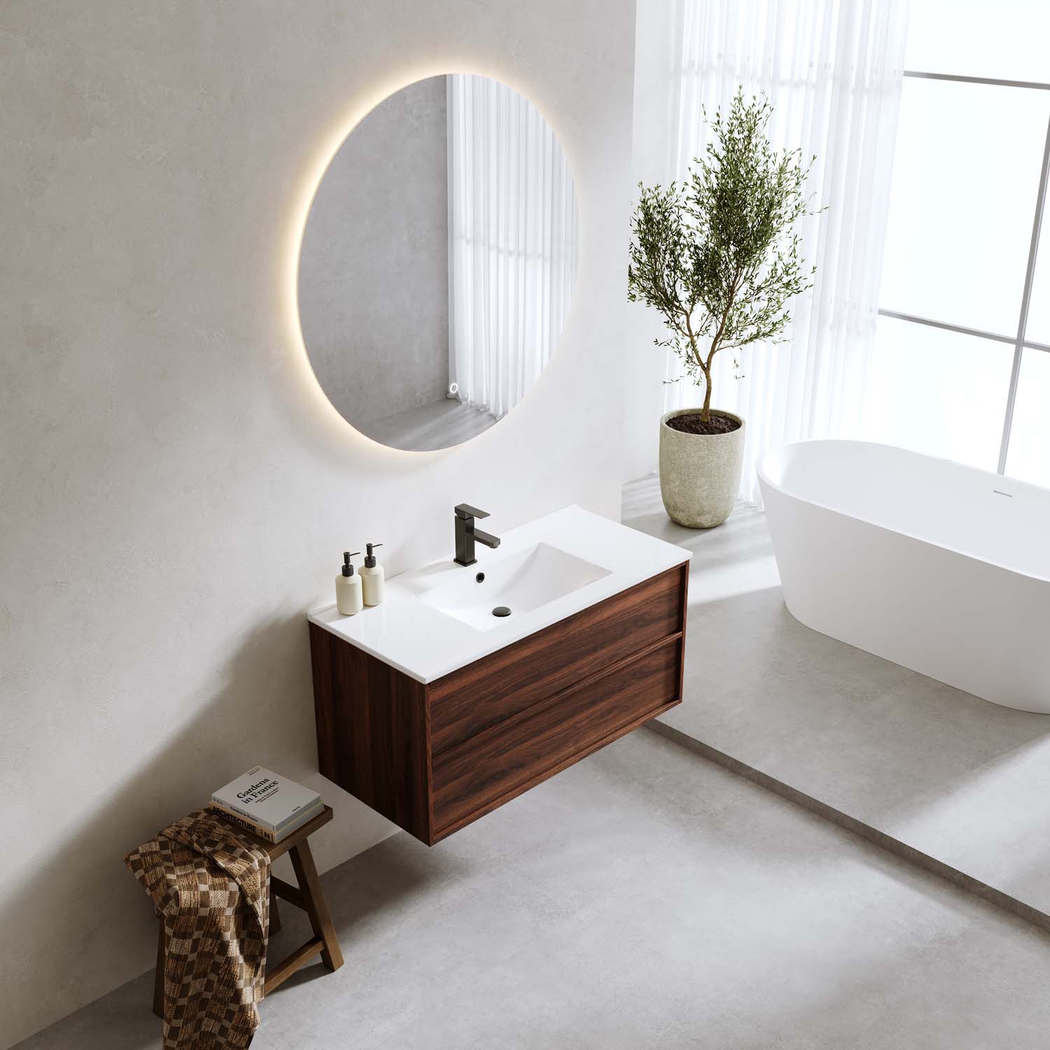 Kylpyhuonekaluste Bathlife Charm on moderni ja tyylikäs kaluste kauniilla puupinnalla. Pehmeästi sulkeutuvien laatikoiden etulevyissä on ohut raamikehys ja integroidut vetimet. Kaksi laatikkoa tarjoaa reilusti säilytystilaa. Kaluste on valmistettu melamiinipäällysteisestä MDF:stä ja toimitetaan koottuna. Kalusteen mukana tulee valkoinen posliininen pesuallas. Osta lisäksi pohjaventtiili, pesuallashana ja vesilukko. Bathlife on kehittänyt tämän tuotteen Ruotsissa tavoitteenaan tarjota edullinen ja laadukas tuote, johon voit luottaa ja josta voit nauttia pitkään.