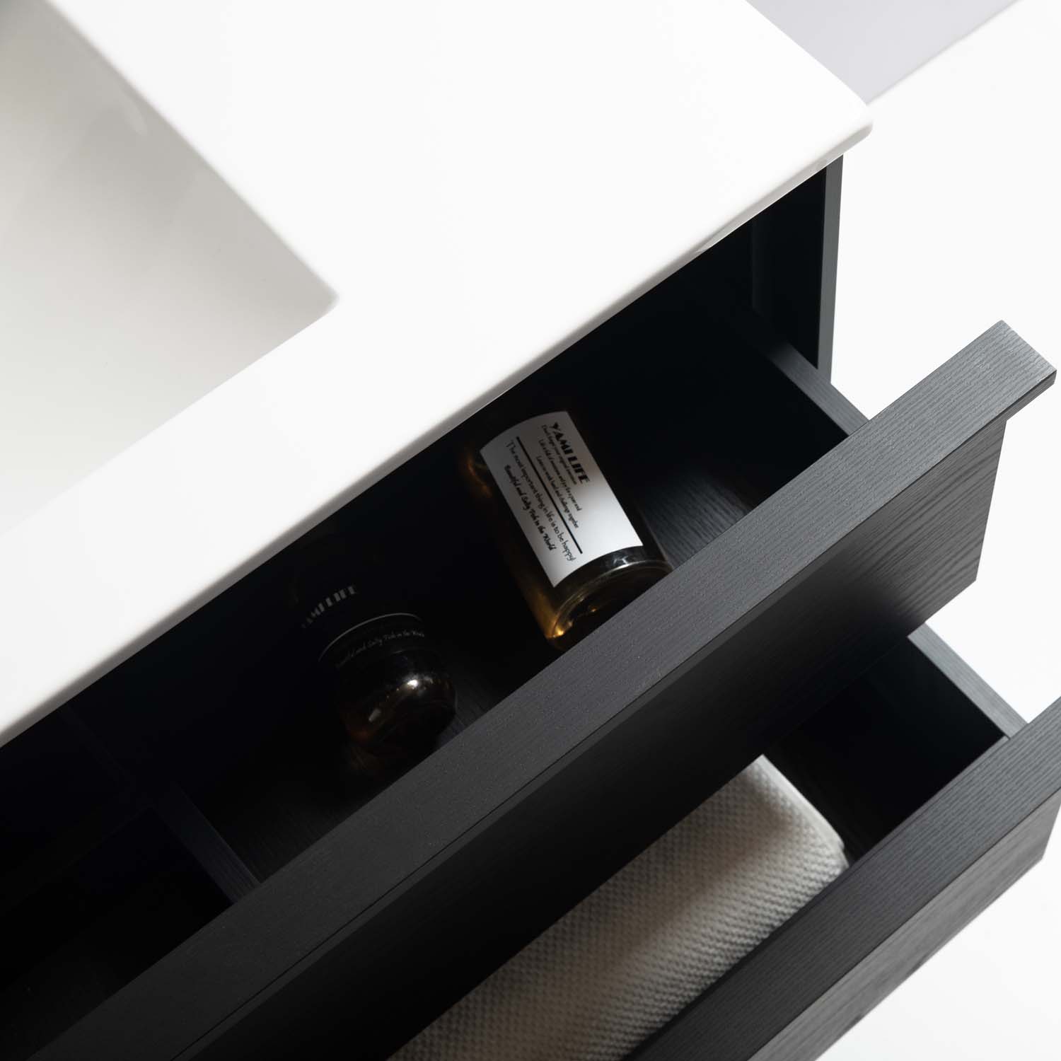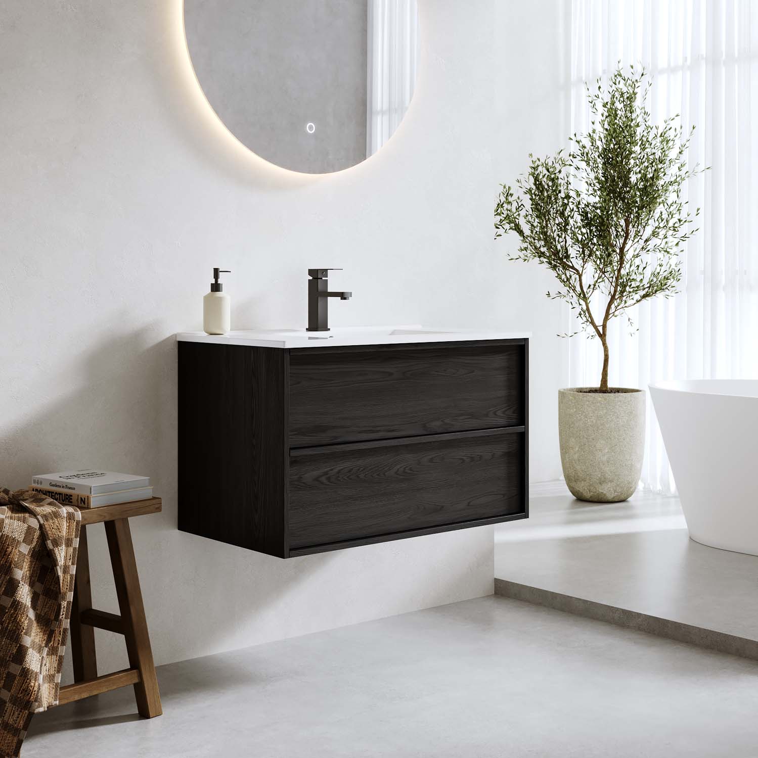 Kylpyhuonekaluste Bathlife Charm on moderni ja tyylikäs kaluste kauniilla puupinnalla. Pehmeästi sulkeutuvien laatikoiden etulevyissä on ohut raamikehys ja integroidut vetimet. Kaksi laatikkoa tarjoaa reilusti säilytystilaa. Kaluste on valmistettu melamiinipäällysteisestä MDF:stä ja toimitetaan koottuna. Kalusteen mukana tulee valkoinen posliininen pesuallas. Osta lisäksi pohjaventtiili, pesuallashana ja vesilukko. Bathlife on kehittänyt tämän tuotteen Ruotsissa tavoitteenaan tarjota edullinen ja laadukas tuote, johon voit luottaa ja josta voit nauttia pitkään.