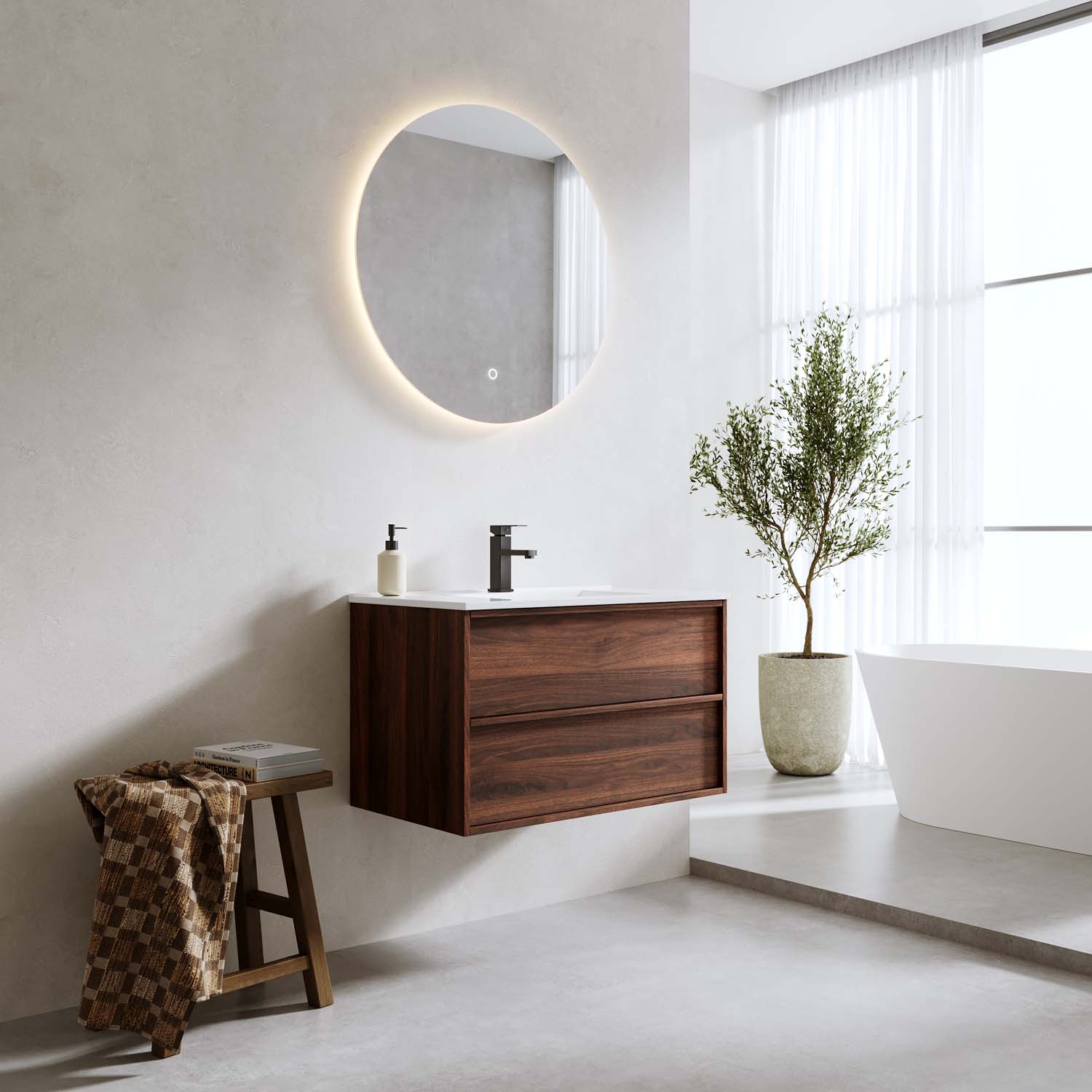 Kylpyhuonekaluste Bathlife Charm on moderni ja tyylikäs kaluste kauniilla puupinnalla. Pehmeästi sulkeutuvien laatikoiden etulevyissä on ohut raamikehys ja integroidut vetimet. Kaksi laatikkoa tarjoaa reilusti säilytystilaa. Kaluste on valmistettu melamiinipäällysteisestä MDF:stä ja toimitetaan koottuna. Kalusteen mukana tulee valkoinen posliininen pesuallas. Osta lisäksi pohjaventtiili, pesuallashana ja vesilukko. Bathlife on kehittänyt tämän tuotteen Ruotsissa tavoitteenaan tarjota edullinen ja laadukas tuote, johon voit luottaa ja josta voit nauttia pitkään.