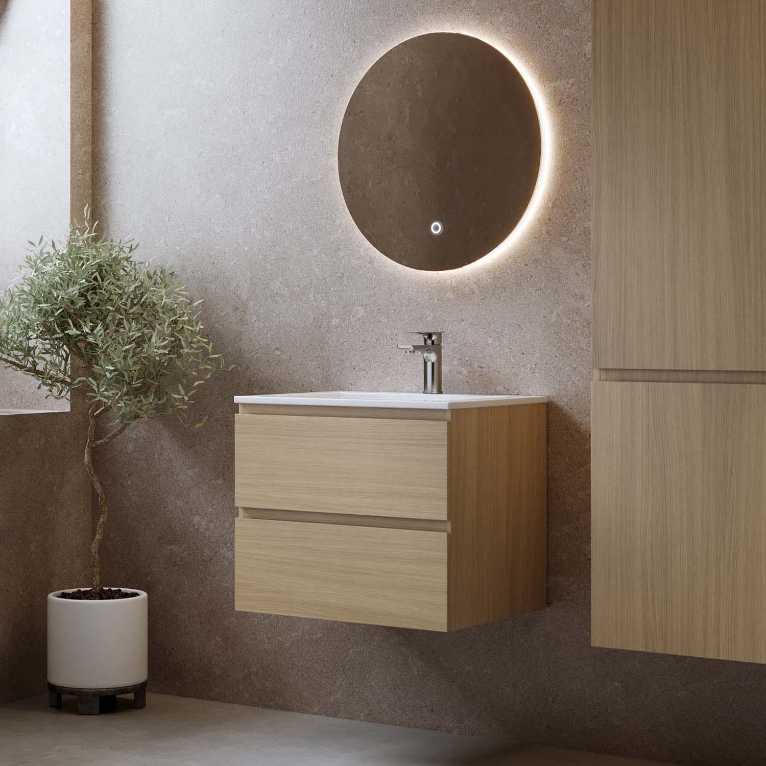 Allaskaappi Eufori 600 Vaalea Tammi Ja Pesuallas