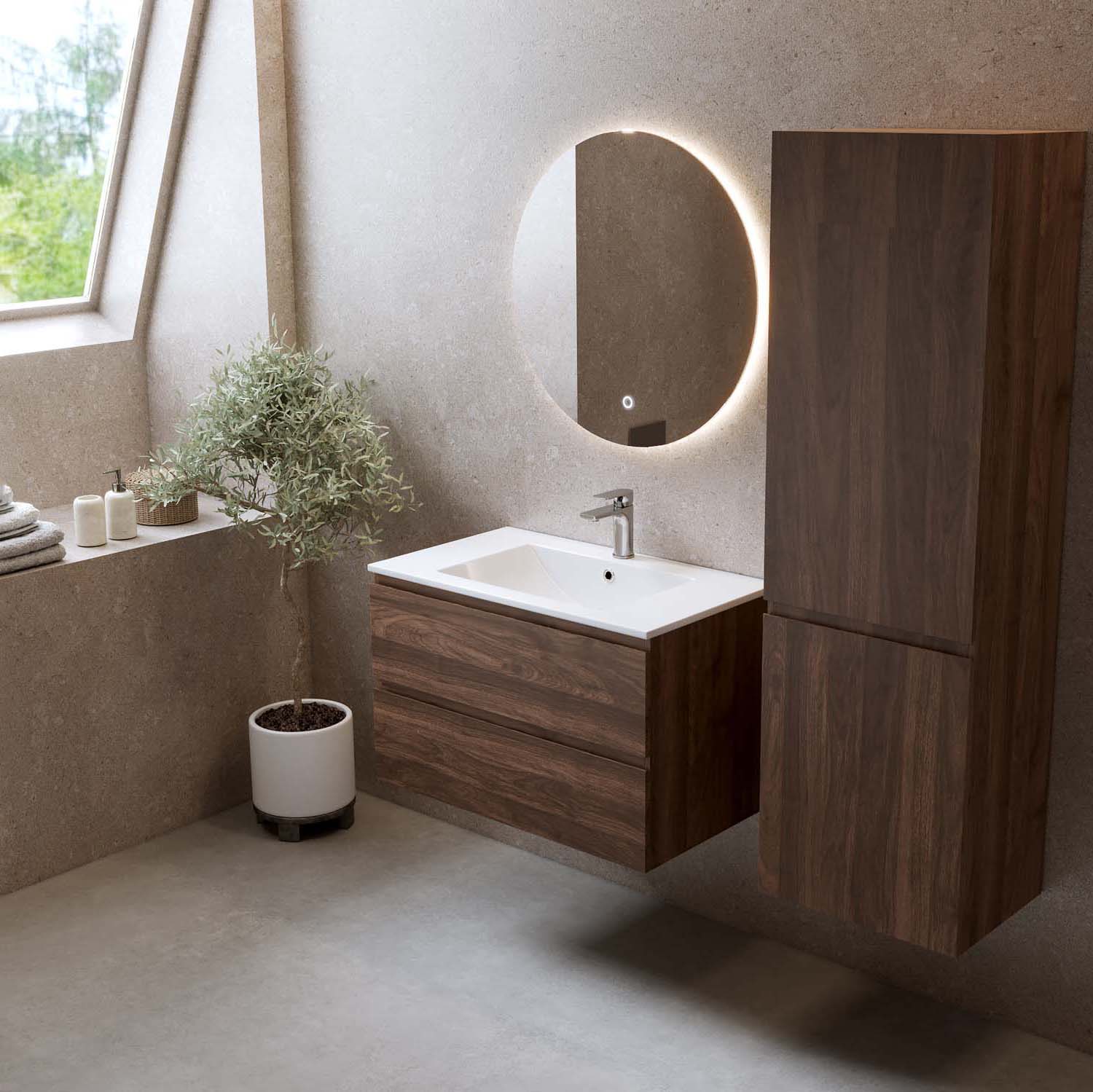 Bathlife Eufori pähkinä on tyylikäs allaskaappi pesualtaalla, joka antaa luonnollisen ja lämpimän tunteen puukuvioidulla pinnallaan. Valmistettu MDF-levystä. Pesuallas on valkoista posliinia. Kaappi tarjoaa tyylikästä ja fiksua säilytystilaa kahdessa laatikossa (4 laatikkoa leveydellä 1200 mm), jotka ovat pehmeästi sulkeutuvia.