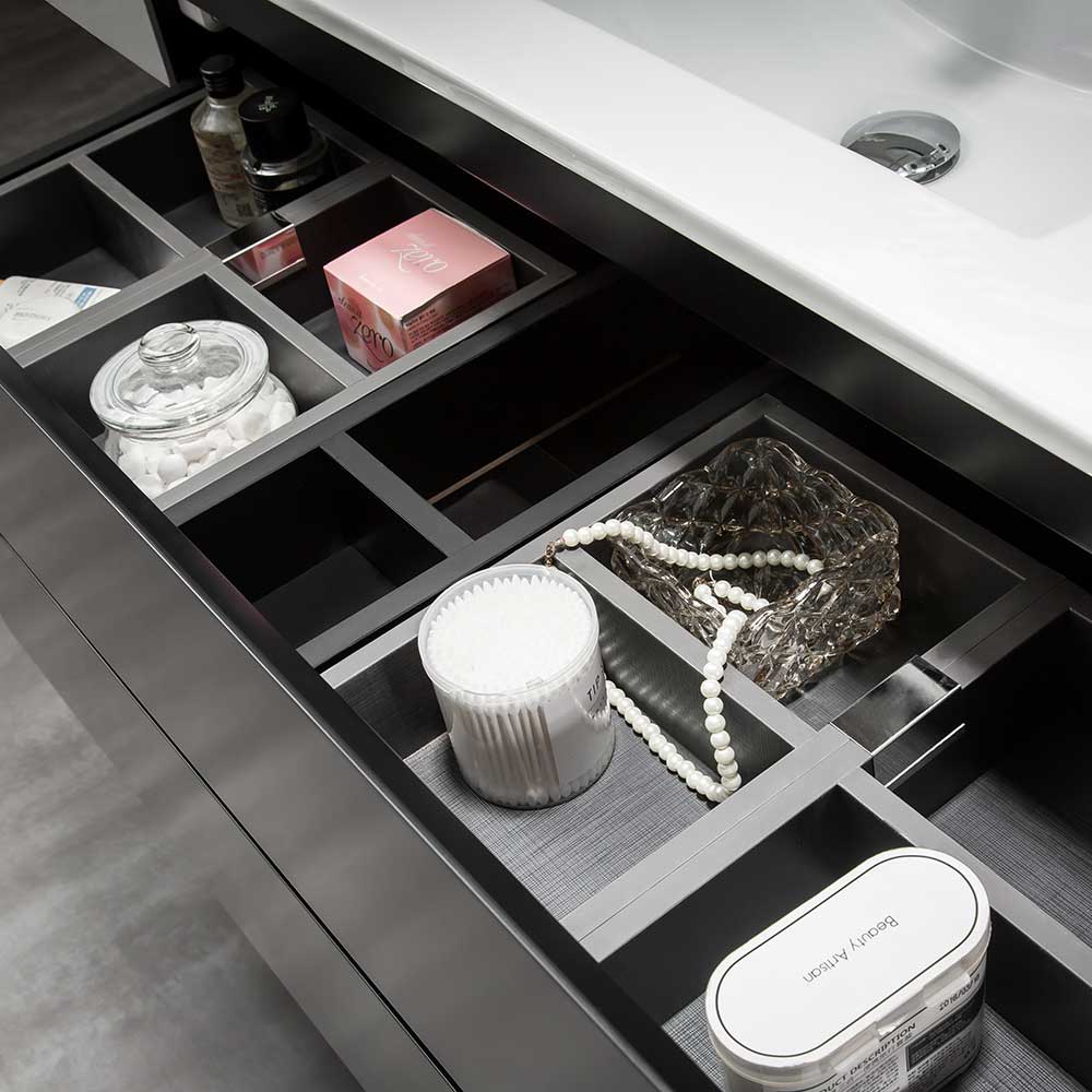 Laadukas allaskaluste on varustettu kaksiosaisella pistorasialla ja paristokäyttöisellä led-valaisimella (paristot eivät sisälly). Kalusteen sisällä pistorasia pysyy nätisti piilossa, ja on aina kätevästi laitteiden ulottuvilla. Valaisimen avulla löydät laatikosta myös pienimmät tarvikkeet helposti. Tutustu laajaan Bathlife-valikoimaan, ja tee kylpyhuoneunelmistasi totta jo tänään!