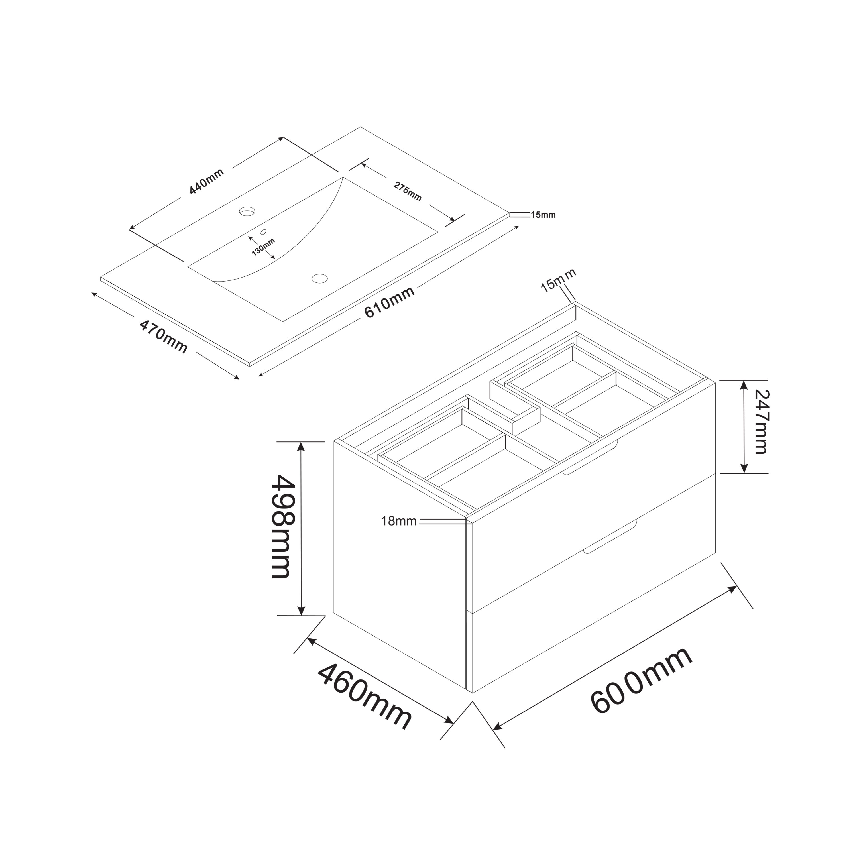Nykyaikainen Bathlife Glädje 600 -allaskaappi on loistava vaihtoehto, kun haluat lisätä kylpyhuoneesi toiminnallisuutta. Vetolaatikoiden etulevyjen yläreunaan on muotoiltu tyylikäs otin, josta laatikot on helppo avata. Laatikot sulkeutuvat aina pehmeästi ja hiljaisesti. Moderni 600 mm leveä alakaappi mahtuu hyvin myös pienempään kylpyhuoneeseen tai wc-tilaan. Kalustesettiin kuuluu valkoinen pesuallas, joka on posliinia.