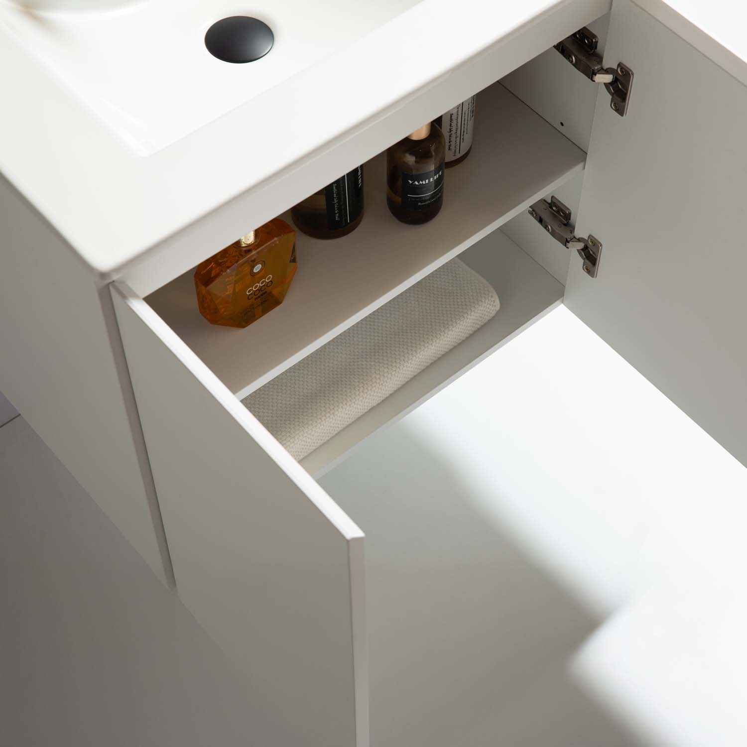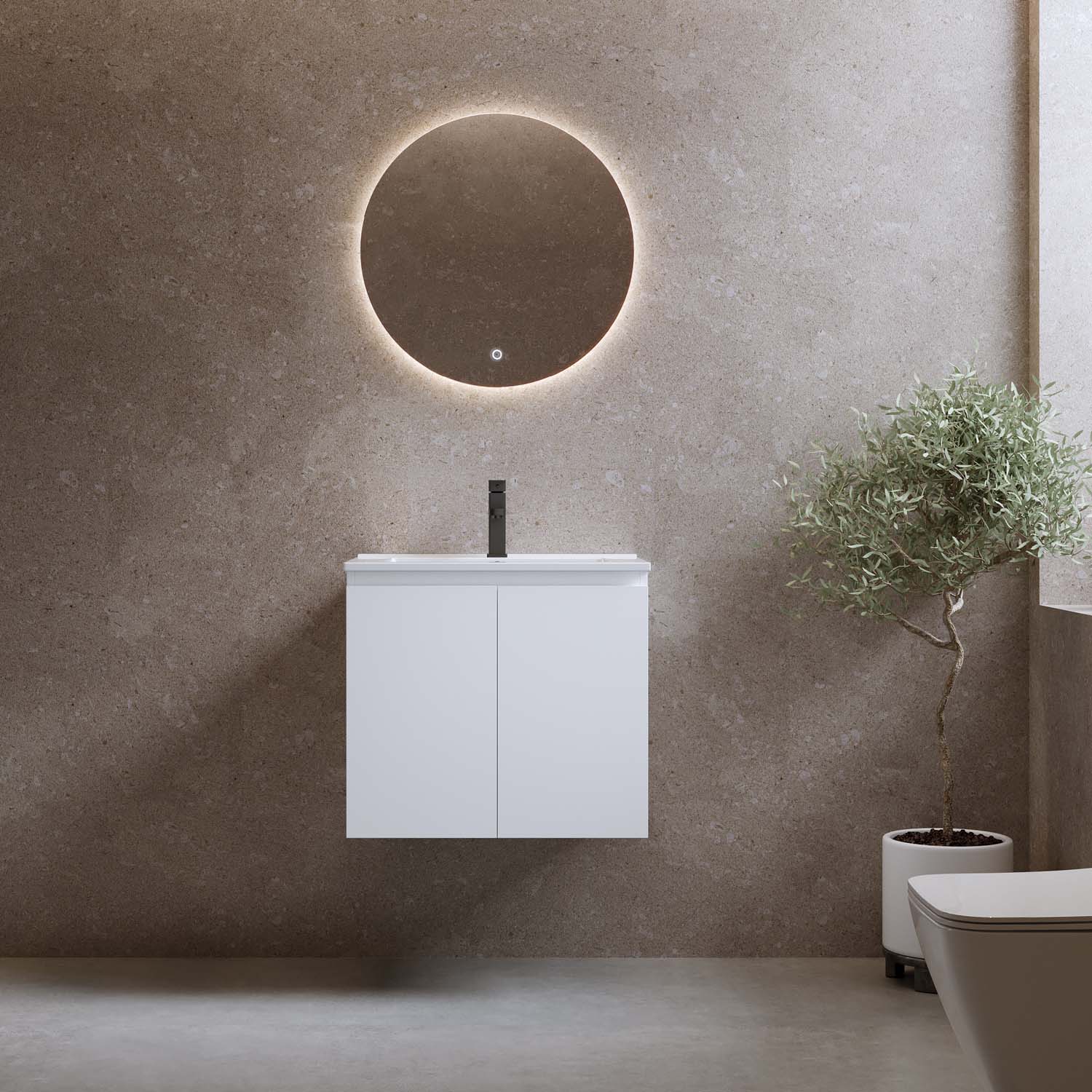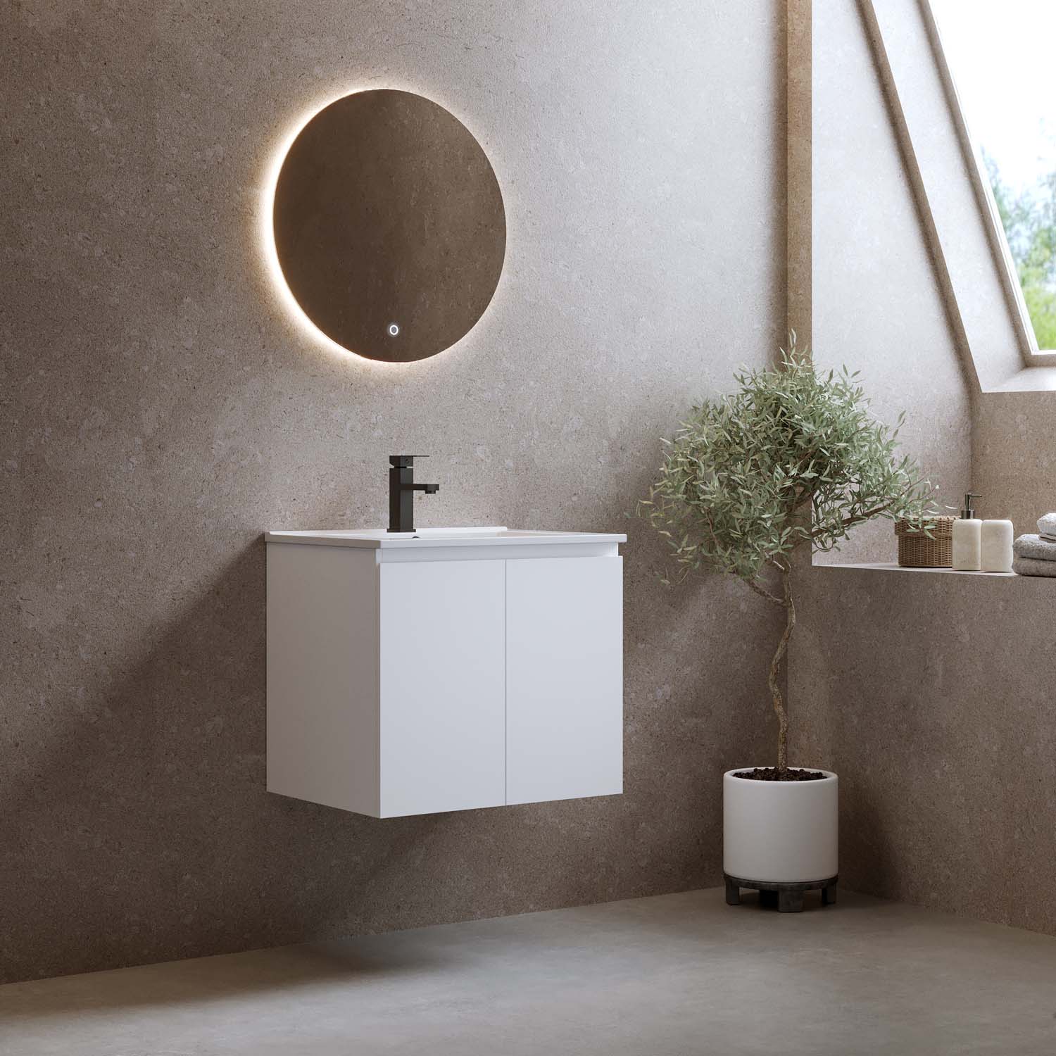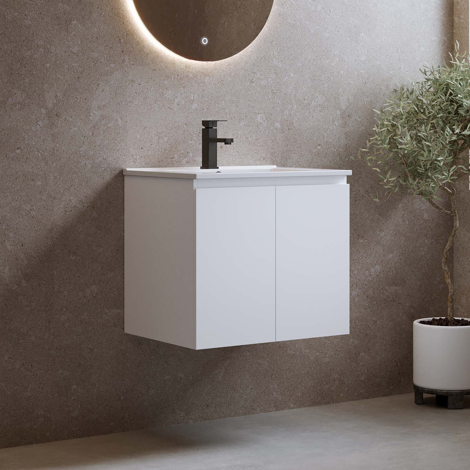 Kylpyhuonekaluste Bathlife Smila on tyylikäs ja edullinen pesuallaskaappi. Integroiduilla vetimillä varustetut kaksi ovea ovat pehmeästi sulkeutuvia. Kaapin sisällä on irrotettava hylly ja runsaasti säilytystilaa. Kaluste on valmistettu melamiinipäällysteisestä MDF:stä ja toimitetaan koottuna. Kalusteen mukana tulee valkoinen posliininen pesuallas. Osta lisäksi pohjaventtiili, pesuallashana ja vesilukko.