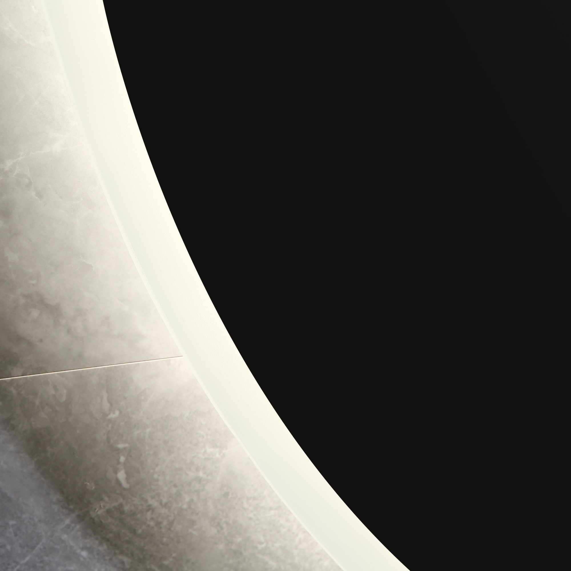 Valopeili Bathlife Skina on hipaisukytkimellä varustettu kaunis kylpyhuoneen peili. Halkaisijaltaan 500 mm leveän peilin takana kiertää seinää kauniisti valaiseva LED-valaistus. Valaistuksen ansiosta peili hohtaa seinällä kuin pieni aurinko ja tuo kylpyhuoneeseen tunnelmallista valoa. Valon väri on normaali valkoinen.