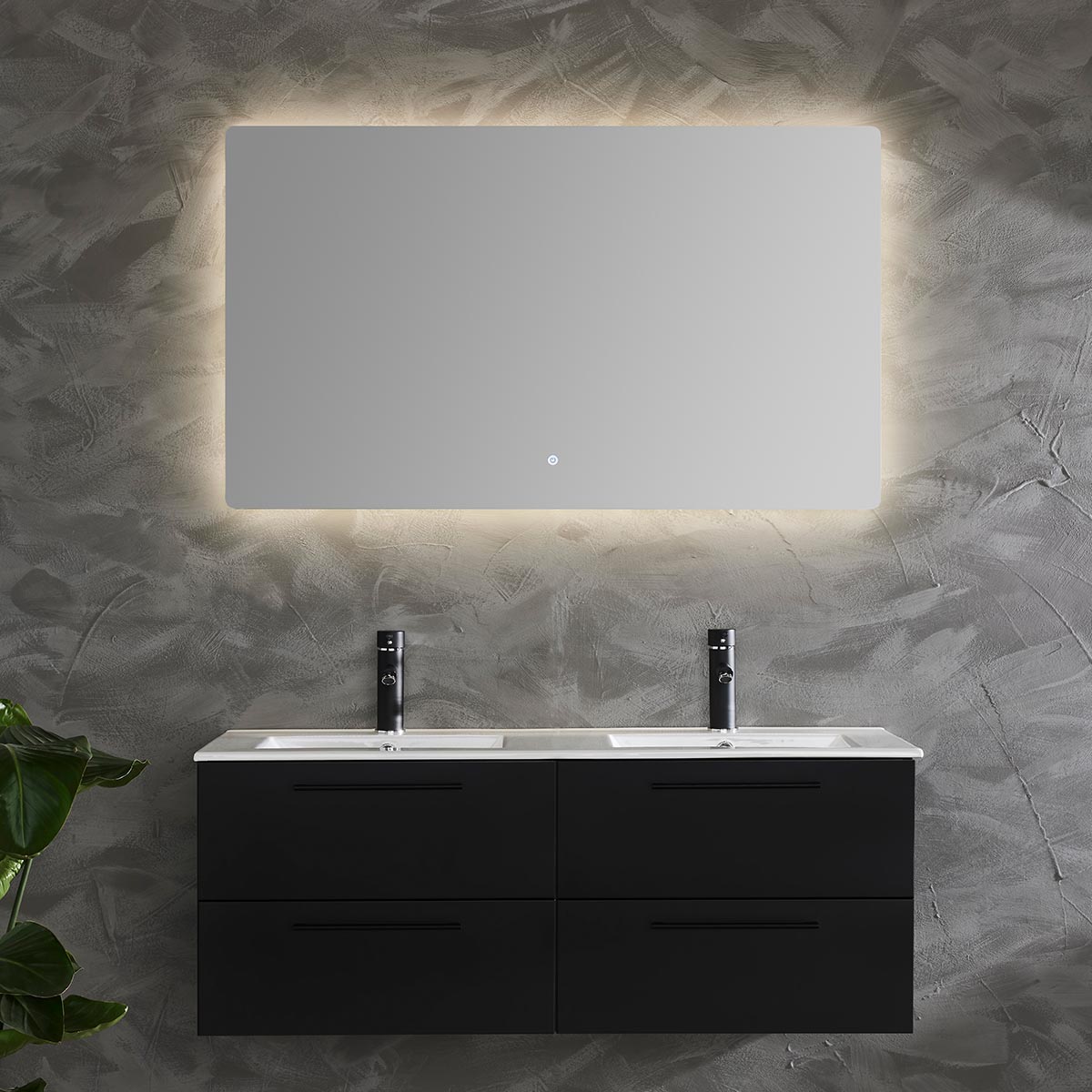 Suureenkin kylpyhuoneeseen sopiva, hipaisukytkimellä varustettu suorakulmainen valopeili Bathlife Tindra on 1200 mm leveä suorakulmainen kylpyhuoneen peili, jonka takana kiertää seinää valaiseva LED-valaistus. Viehättävä, modernisti muotoiltu peili tuo kylpyhuoneeseen kaunista tunnelmavaloa ja tyyliä. Tämän kirjaimellisesti loistavan peilin edessä on mukava suorittaa kylpyhuoneen puuhia.
