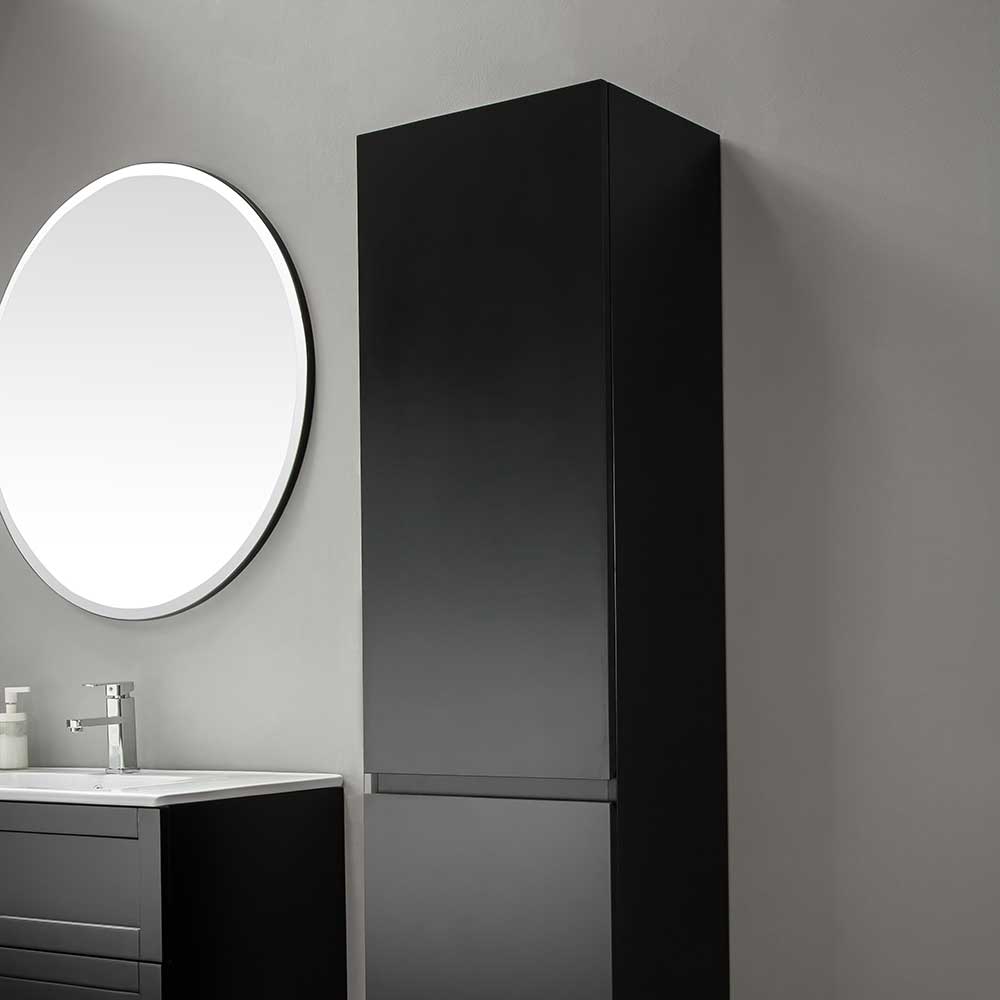 Musta Bathlife Eufori -sivukaappi tuo lisää kaivattua säilytystilaa kylpyhuoneeseesi. Seinäkaapin sisällä tavarat pysyy nätissä järjestyksessä katseilta piilossa, joten kylpyhuone pysyy siistin näköisenä. Kaapin ovissa on viistot kädensijat, joten vetimiä ei tarvita. Kaappi on oikeankätinen.