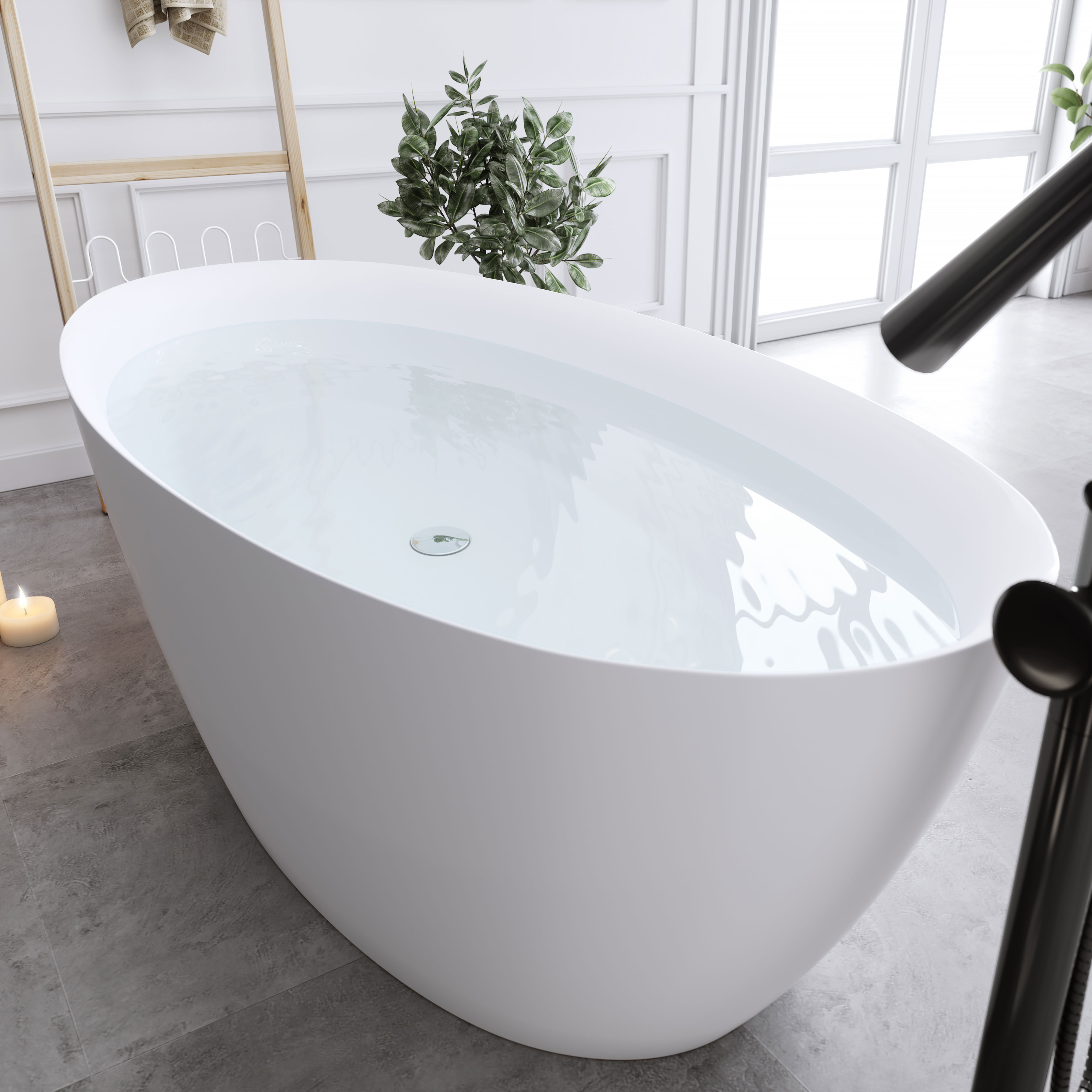 Kaunis, mattavalkoinen kylpyamme Bathlife Sund on valmistettu saniteettiakryylista. Saniteettiakryyli on kestävä materiaali, joka pitää hyvin lämpöä ja on myös helppo pitää puhtaana. Viehättävä, ovaalin muotoinen amme ja sen mattapinta yhdistyvät moderniksi kokonaisuudeksi, jonka juuri sopiva leveys ja kylpysyvyys luovat täydelliset edellytykset rennolle kylpyhetkelle. Ammeen toimitus ei sisällä hanaa.